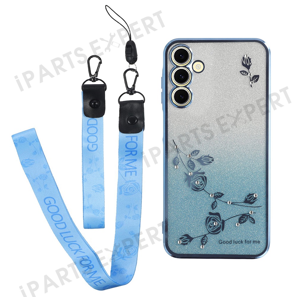 KADEM For Samsung Galaxy A56 5G Case Flower Pattern TPU Gradient Phone Cover with Lanyards - Blue