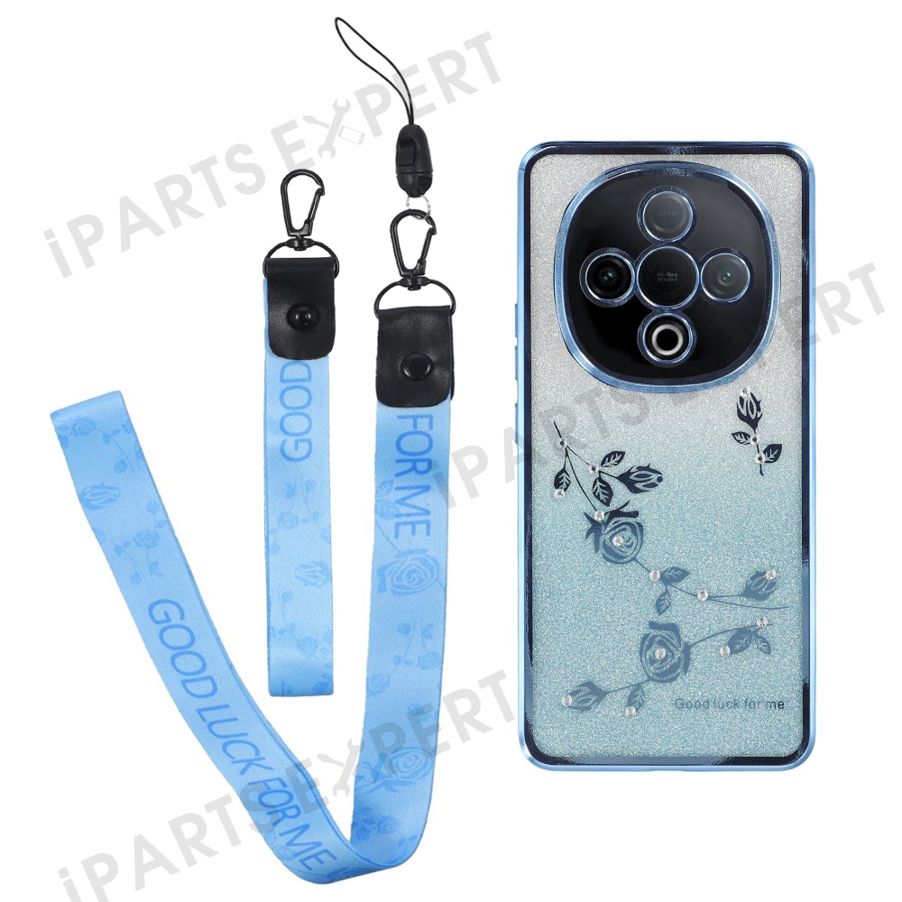 KADEM For vivo Y300 5G Case Flower Pattern TPU Gradient Phone Cover with Lanyards - Blue