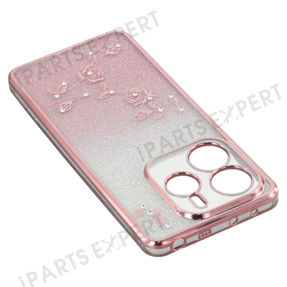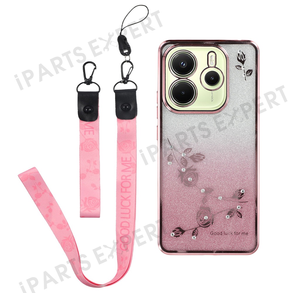 KADEM For Xiaomi Redmi Note 14 4G (163.25mm) Case Flower Pattern TPU Gradient Phone Cover with Lanyards - Rose Gold