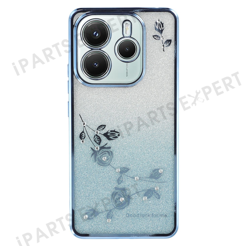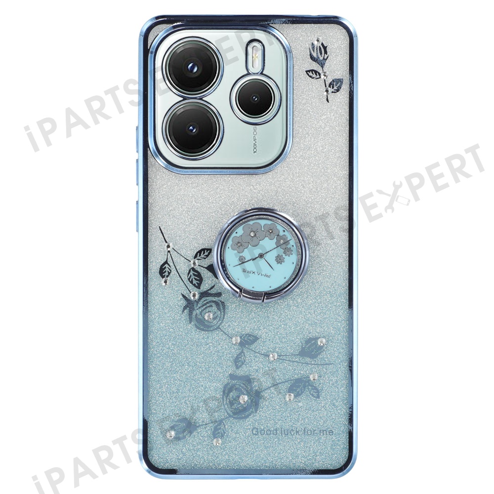 KADEM For Xiaomi Redmi Note 14 5G Case Ring Kickstand TPU Flowers Phone Cover Gradient Glitter - Blue