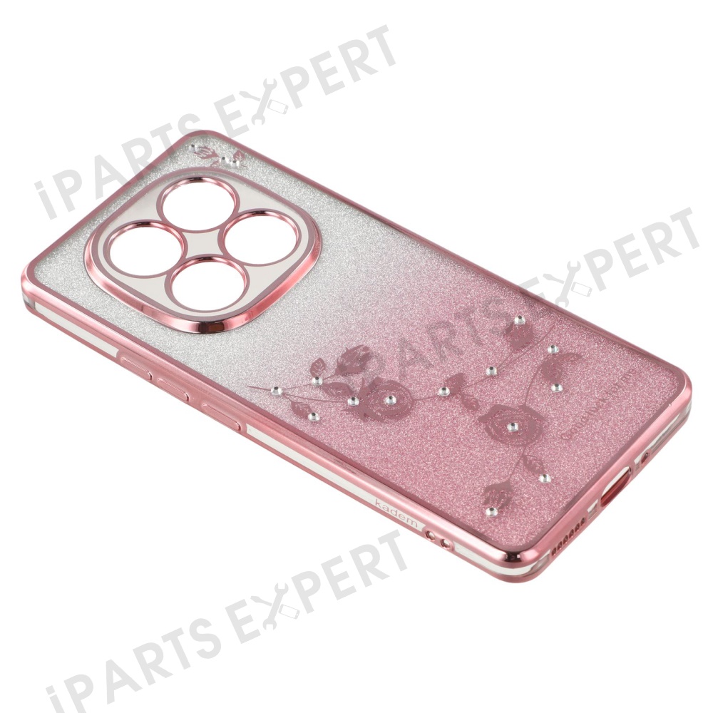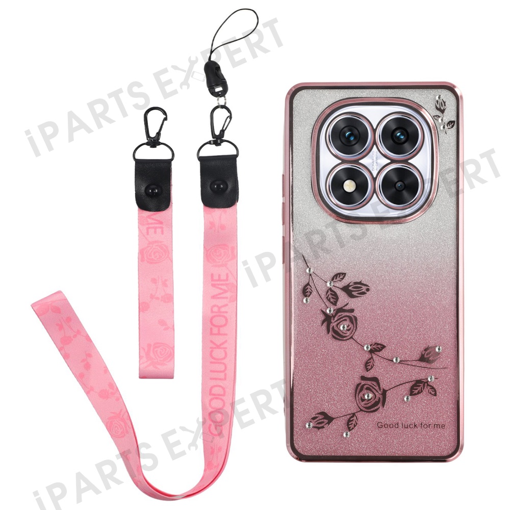 KADEM For Xiaomi Redmi Note 14 Pro 5G / Poco X7 5G Case Flower Pattern TPU Gradient Phone Cover with Lanyards - Rose Gold