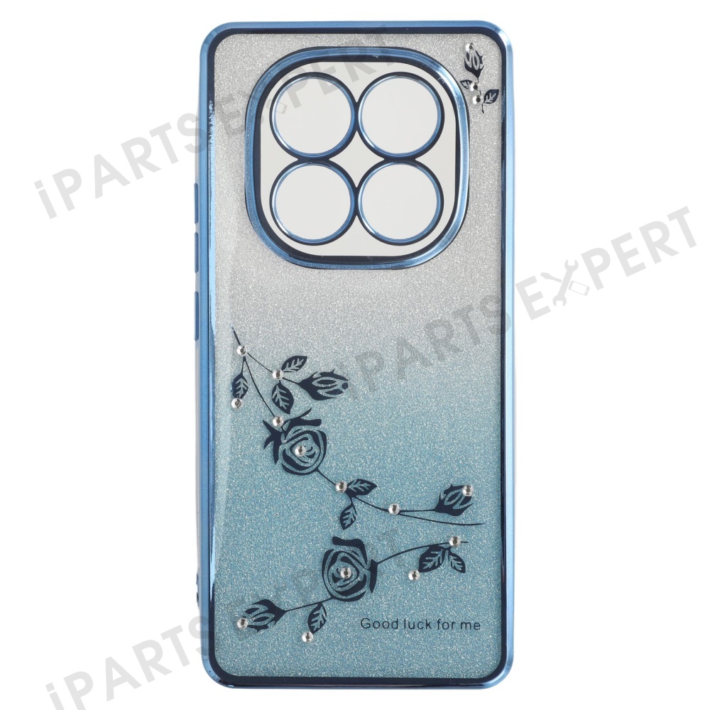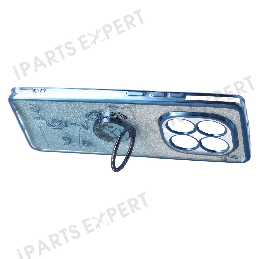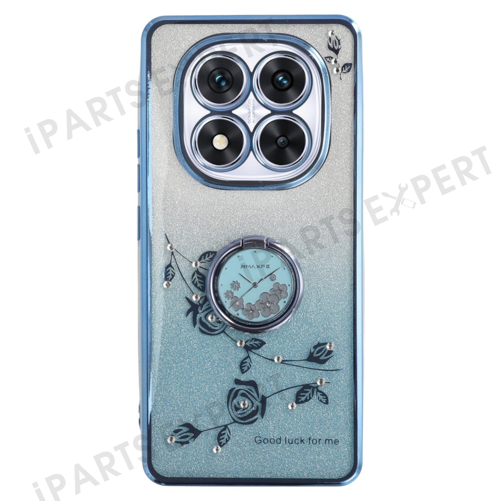 KADEM For Xiaomi Redmi Note 14 Pro 5G / Poco X7 5G Case Ring Kickstand TPU Flowers Phone Cover Gradient Glitter - Blue