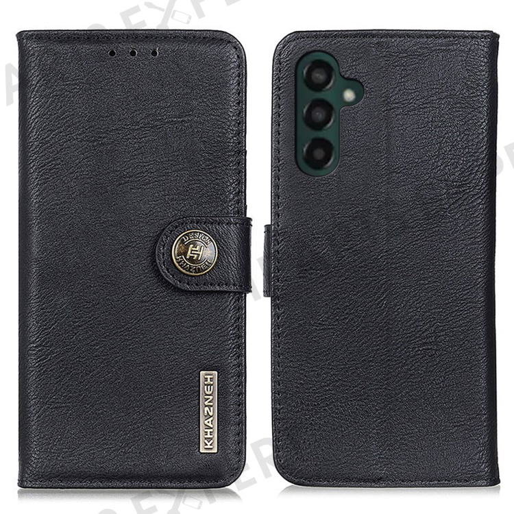 KHAZNEH Flip Leather Phone Case For Samsung Galaxy A24 4G (162.1 x 77.6 x 8.3mm) Cowhide Texture Phone Cover Wallet Stand - Black