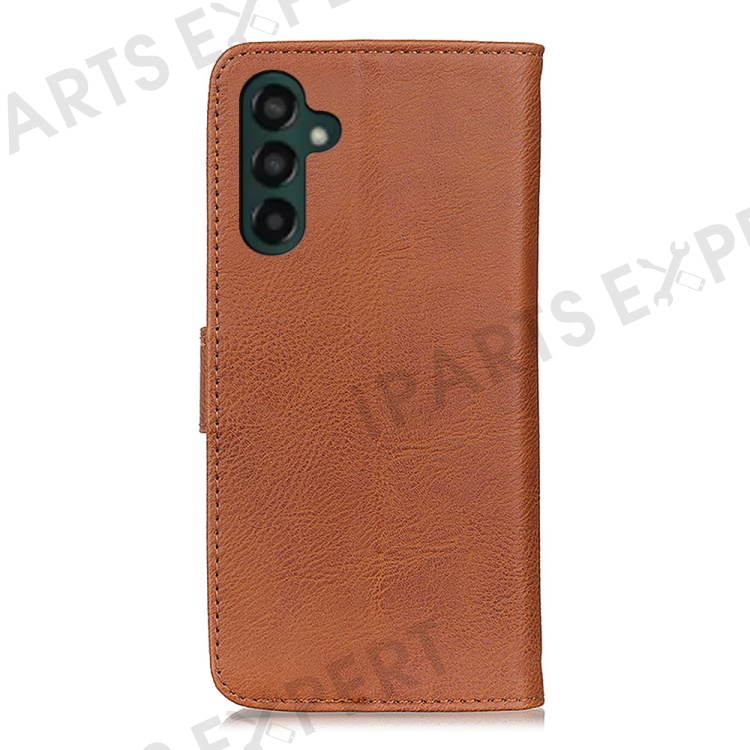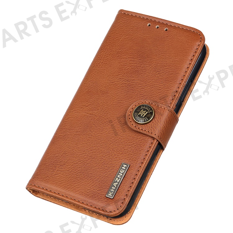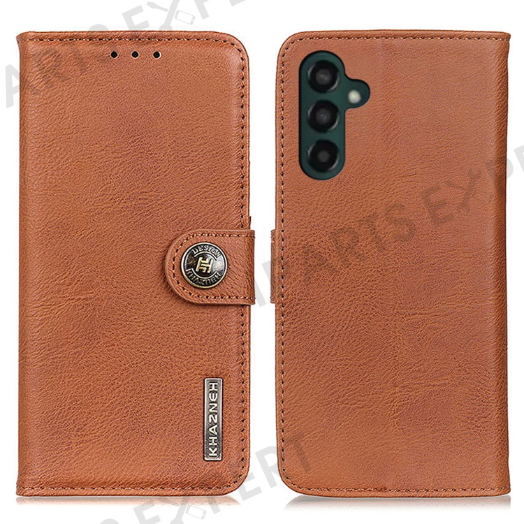 KHAZNEH Flip Leather Phone Case For Samsung Galaxy A24 4G (162.1 x 77.6 x 8.3mm) Cowhide Texture Phone Cover Wallet Stand - Brown