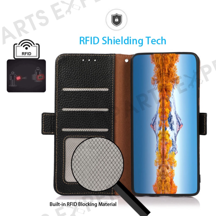 - 【Elegant Litchi Texture Genuine Cow Leather】Crafted from premium litchi texture genuine cow leather, this case offers a sleek and chic outlook, adding a touch of sophistication to your phone