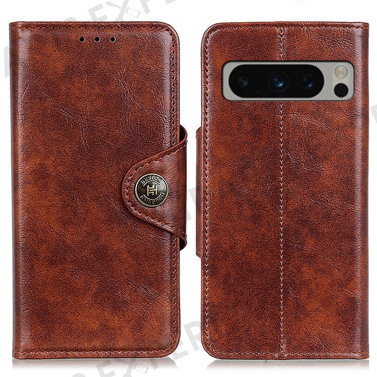 KHAZNEH for Google Pixel 8 Pro Anti-Scratch Phone Stand Case PU Leather Wallet Cover - Brown