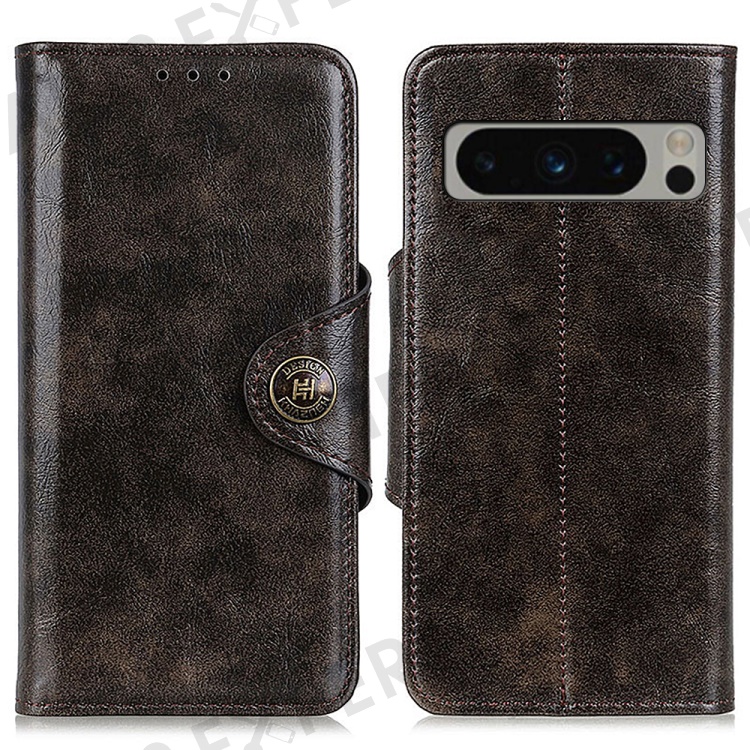 KHAZNEH for Google Pixel 8 Pro Anti-Scratch Phone Stand Case PU Leather Wallet Cover - Coffee