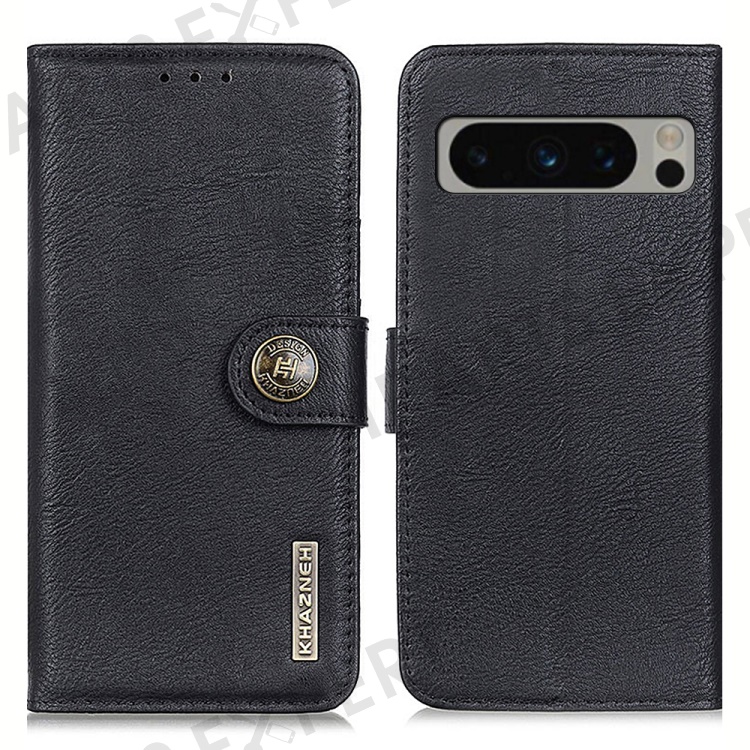KHAZNEH for Google Pixel 8 Pro Wallet Stand Leather Phone Case Cowhide Texture Phone Cover - Black