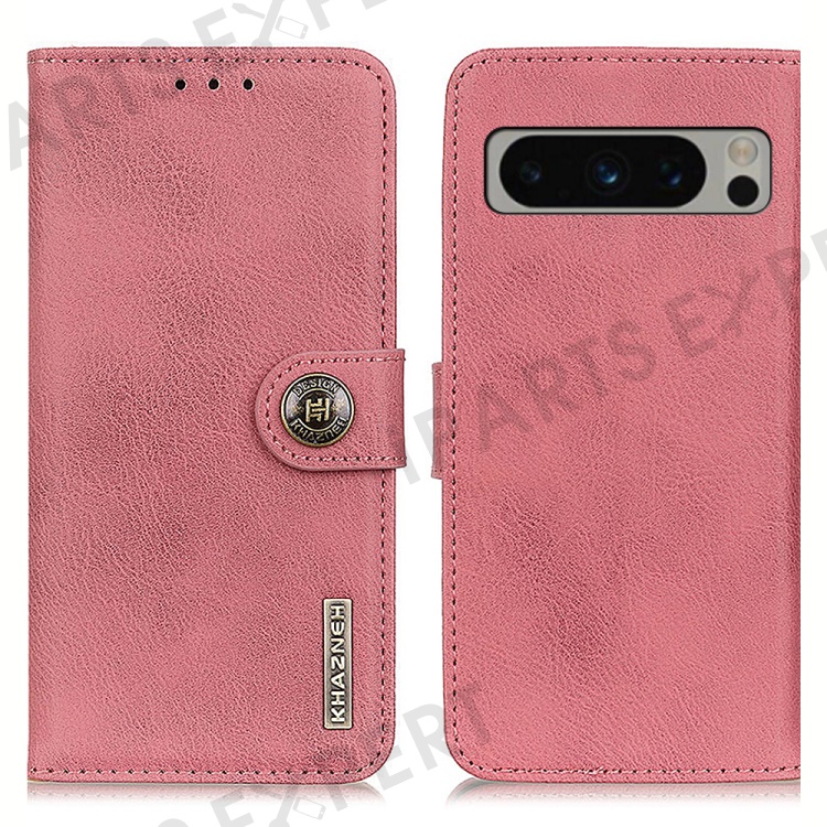 KHAZNEH for Google Pixel 8 Pro Wallet Stand Leather Phone Case Cowhide Texture Phone Cover - Pink
