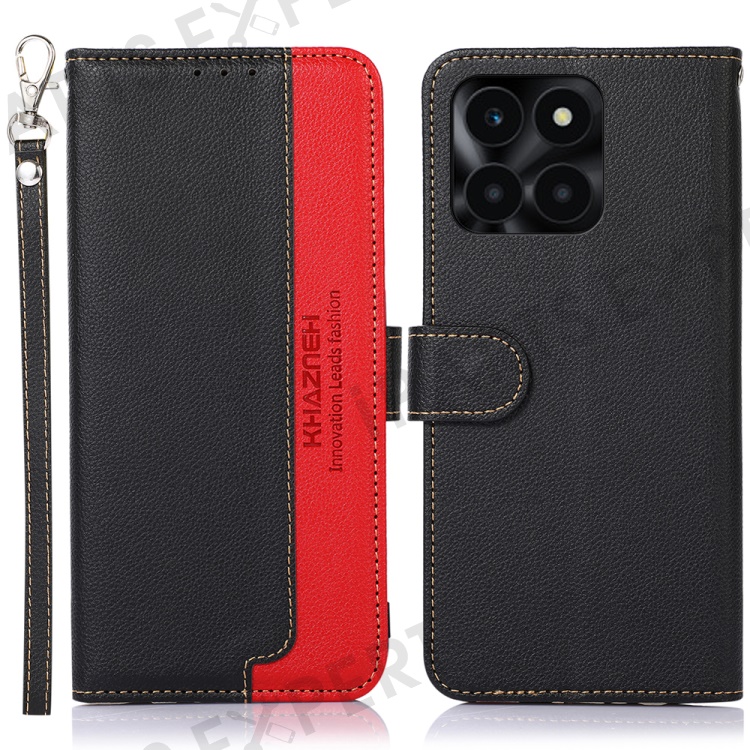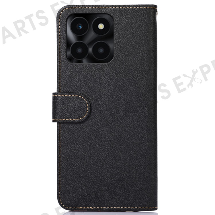 KHAZNEH For Honor X6a 4G RFID Blocking Wallet Case Litchi Texture PU Leather Phone Cover - Black