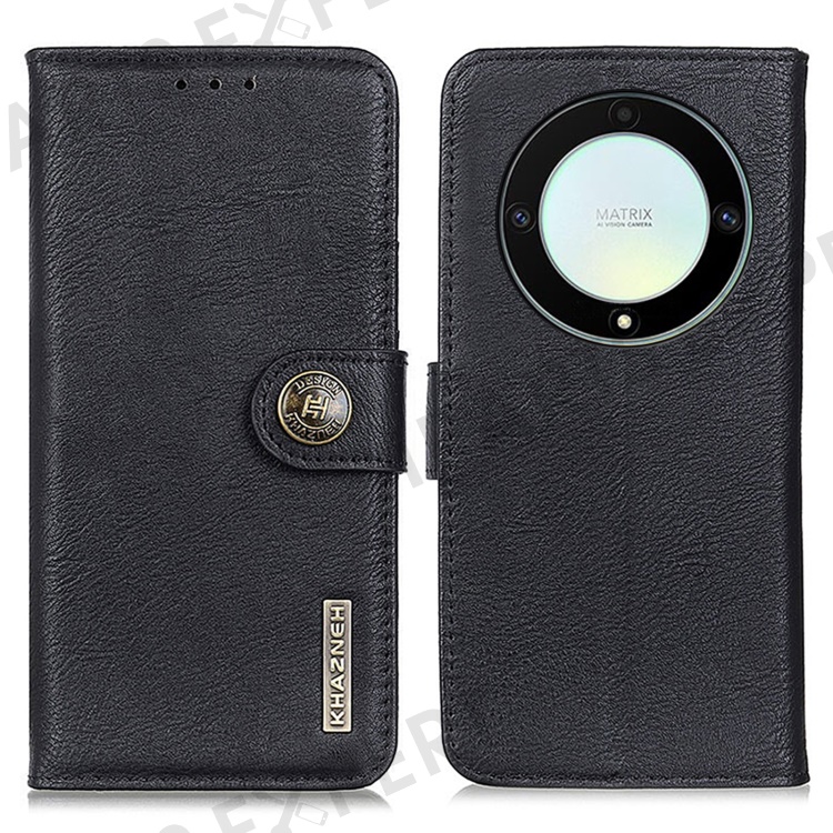KHAZNEH For Honor X9a 5G / Magic5 Lite 5G / X40 5G Anti-drop Phone Case Cowhide Texture Leather Cover Wallet Stand - Black