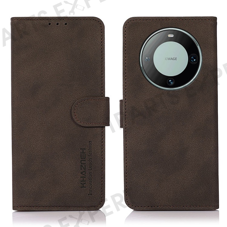 KHAZNEH For Huawei Mate 60 Textured Wallet Stand Cover Magnetic Closure PU Leather Phone Case - Brown