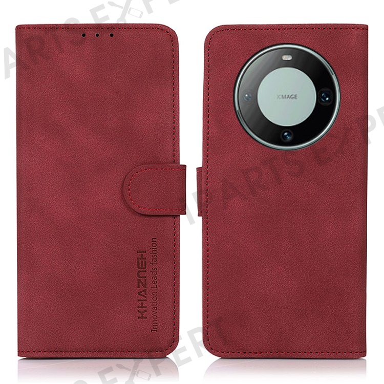 KHAZNEH For Huawei Mate 60 Textured Wallet Stand Cover Magnetic Closure PU Leather Phone Case - Red