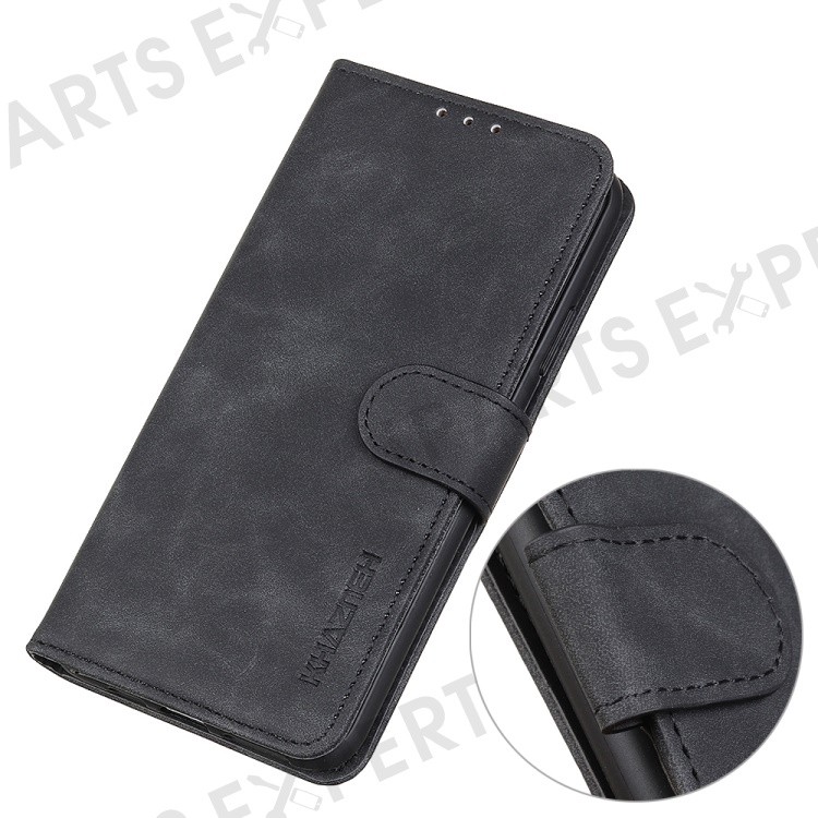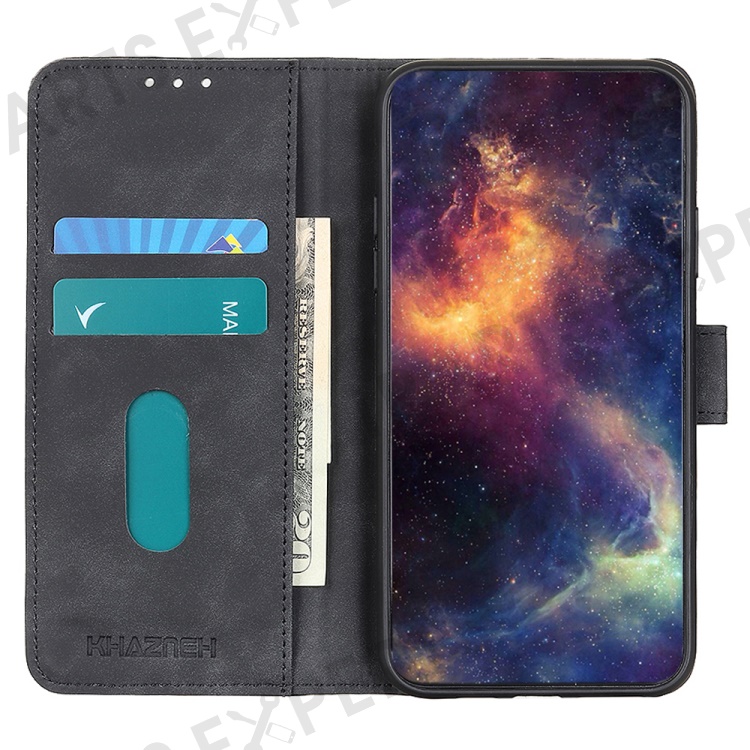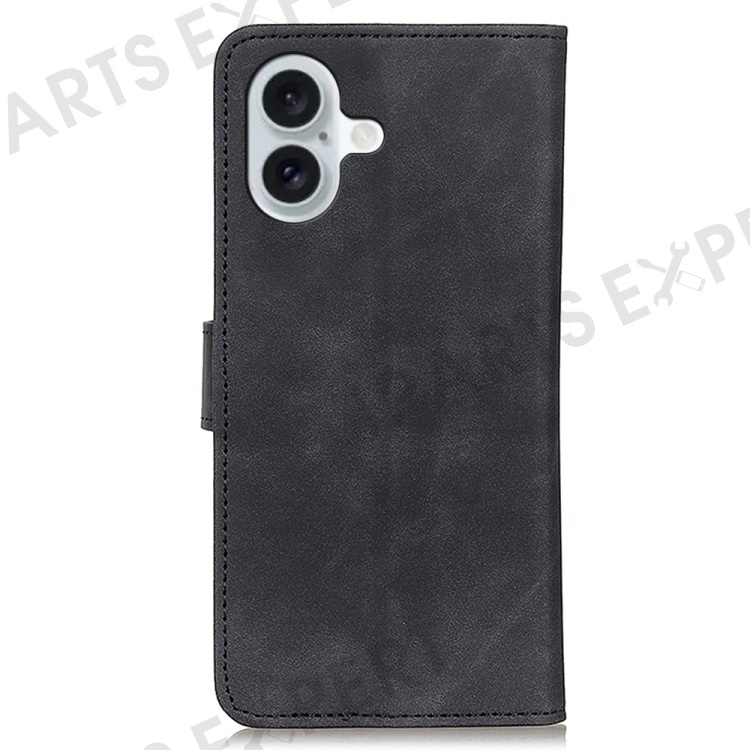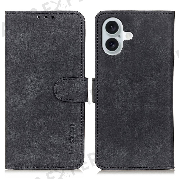KHAZNEH For iPhone 16 Case Retro Leather Phone Cover with Wallet Stand - Black