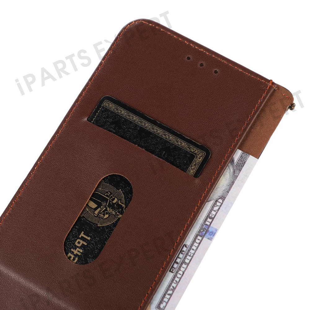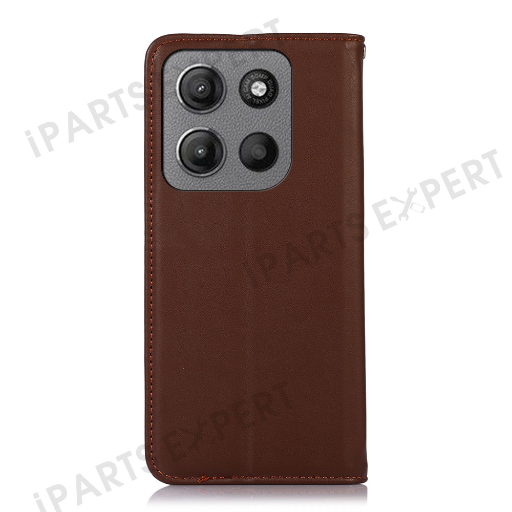 KHAZNEH For Motorola Moto G17 Power 4G / G17 4G / G15 4G / G05 4G Case Genuine Cow Leather Wallet Phone Cover Nappa Texture - Brown