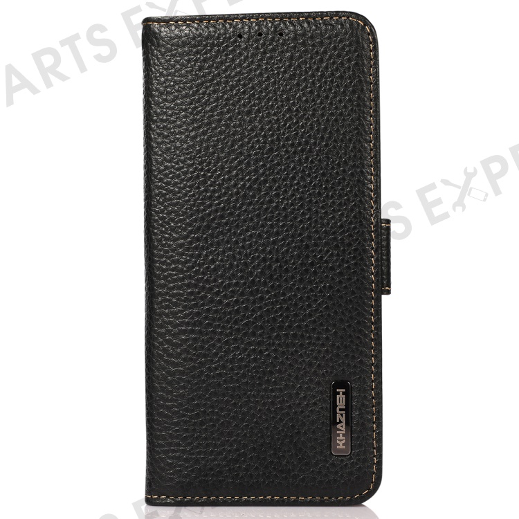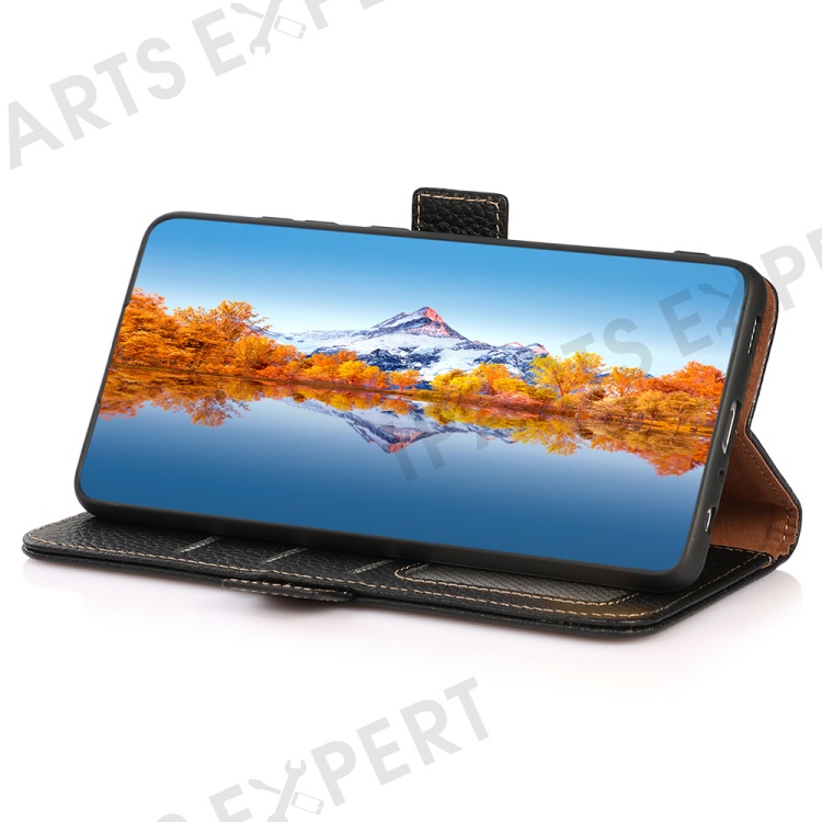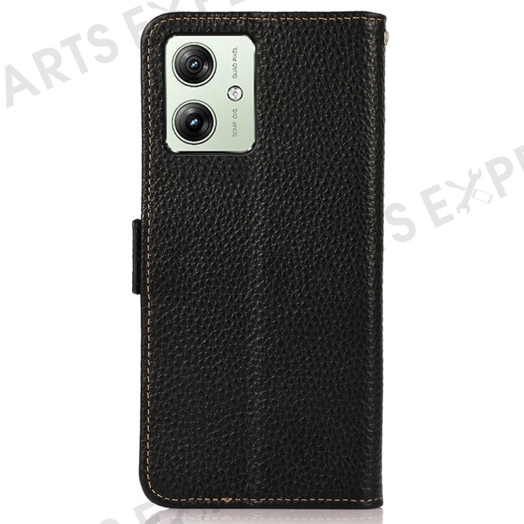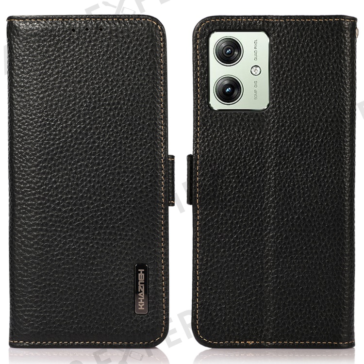 KHAZNEH For Motorola Moto G64 5G Phone Case RFID Blocking Genuine Cow Leather Flip Cover - Black