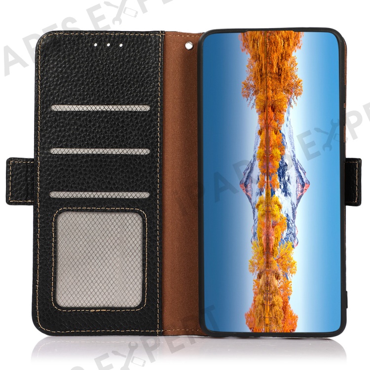 - 【Elegant Litchi Texture Genuine Cow Leather】Crafted from premium litchi texture genuine cow leather, this case offers a sleek and chic outlook, adding a touch of sophistication to your phone