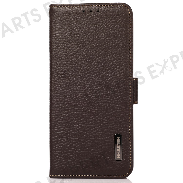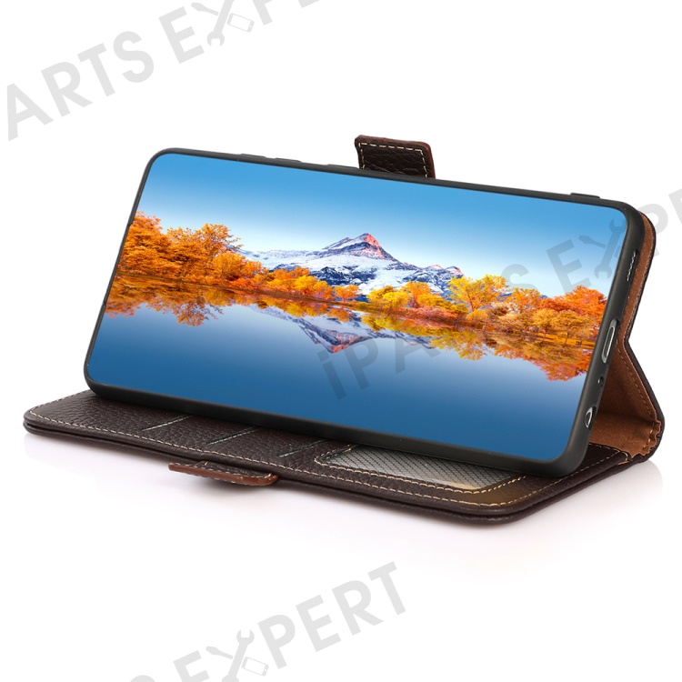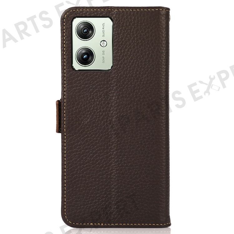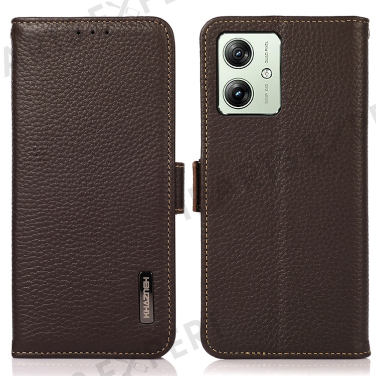 KHAZNEH For Motorola Moto G64 5G Phone Case RFID Blocking Genuine Cow Leather Flip Cover - Brown