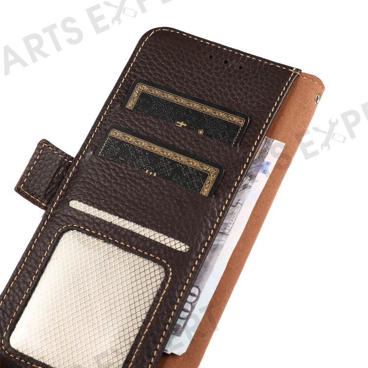 - 【Elegant Litchi Texture Genuine Cow Leather】Crafted from premium litchi texture genuine cow leather, this case offers a sleek and chic outlook, adding a touch of sophistication to your phone