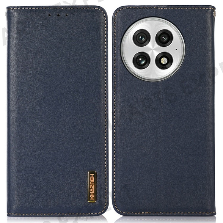 KHAZNEH For OnePlus 13 Case Genuine Cow Leather Wallet Phone Cover Nappa Texture - Blue