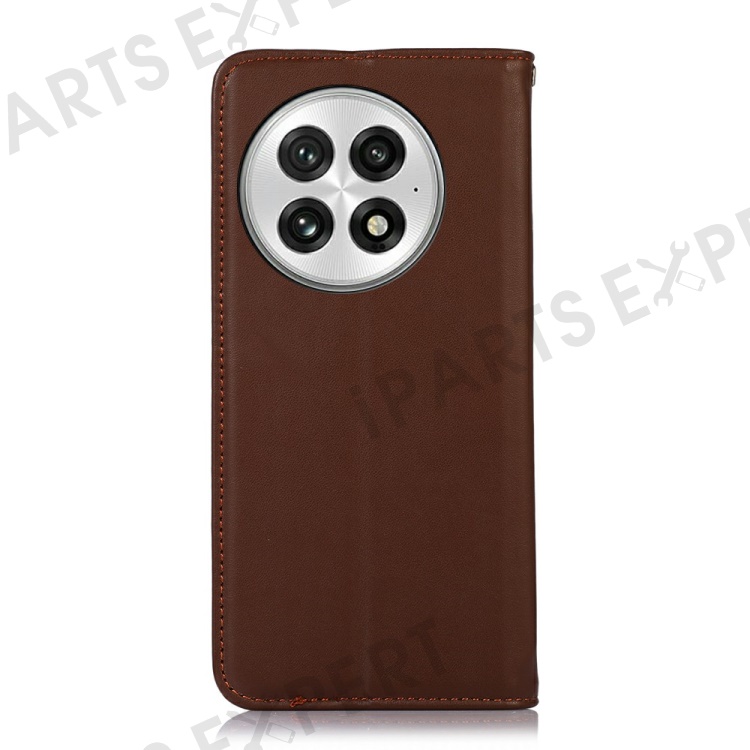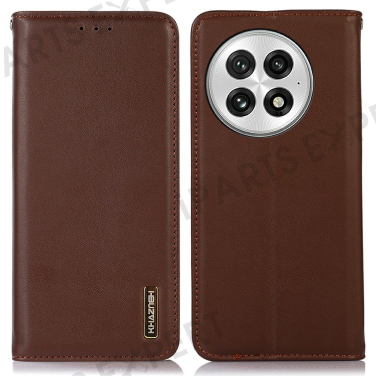 KHAZNEH For OnePlus 13 Case Genuine Cow Leather Wallet Phone Cover Nappa Texture - Brown