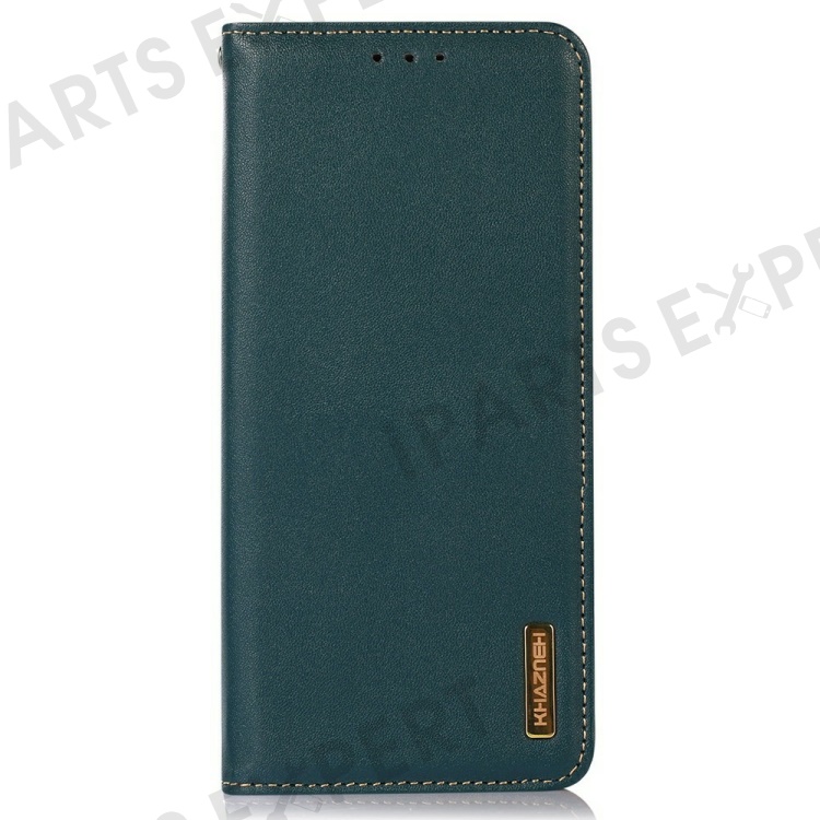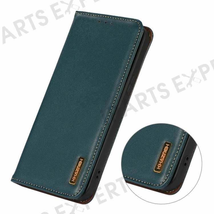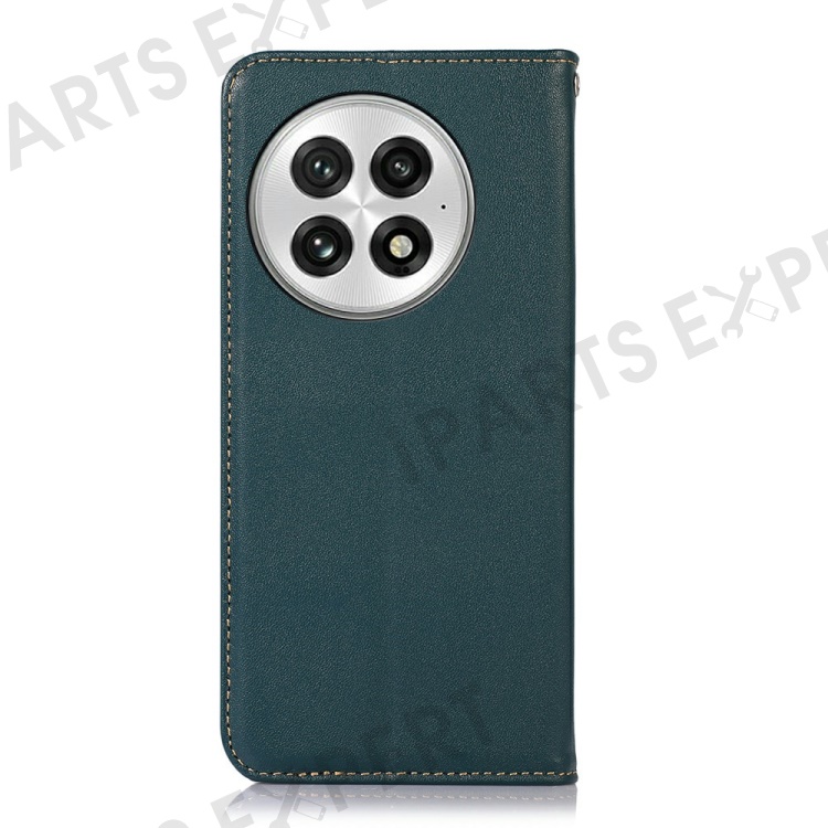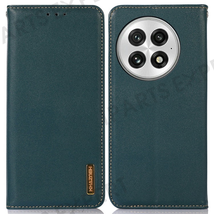KHAZNEH For OnePlus 13 Case Genuine Cow Leather Wallet Phone Cover Nappa Texture - Green