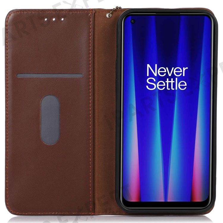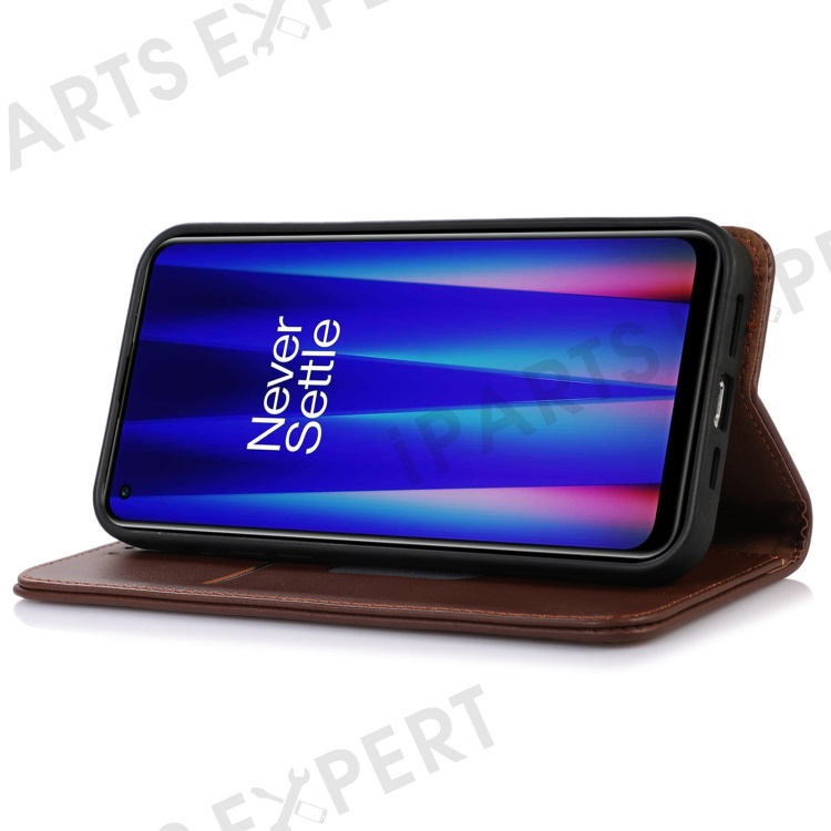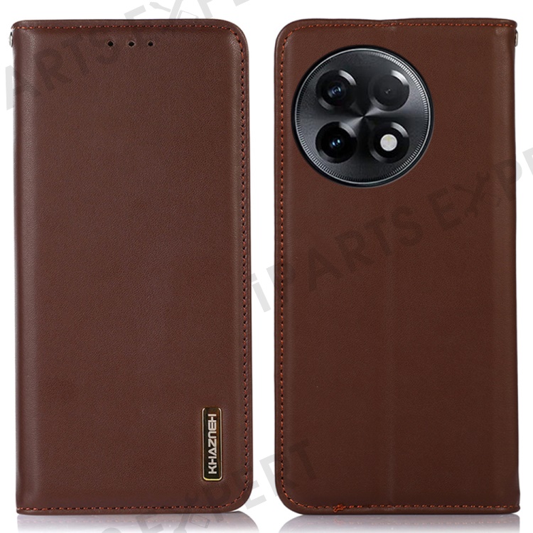 KHAZNEH for OnePlus Ace 2 5G / 11R 5G Phone Case Wallet Stand RFID Blocking Genuine Cowhide Leather Phone Cover - Brown