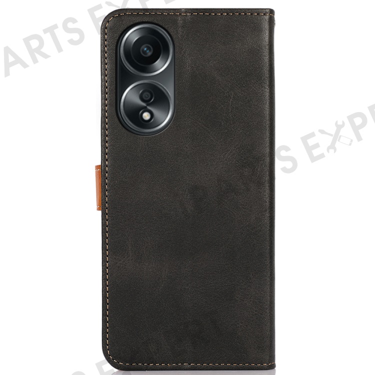 KHAZNEH For Oppo A58 5G Leather Wallet Phone Cover Foldable Stand Cowhide Texture Case - Black