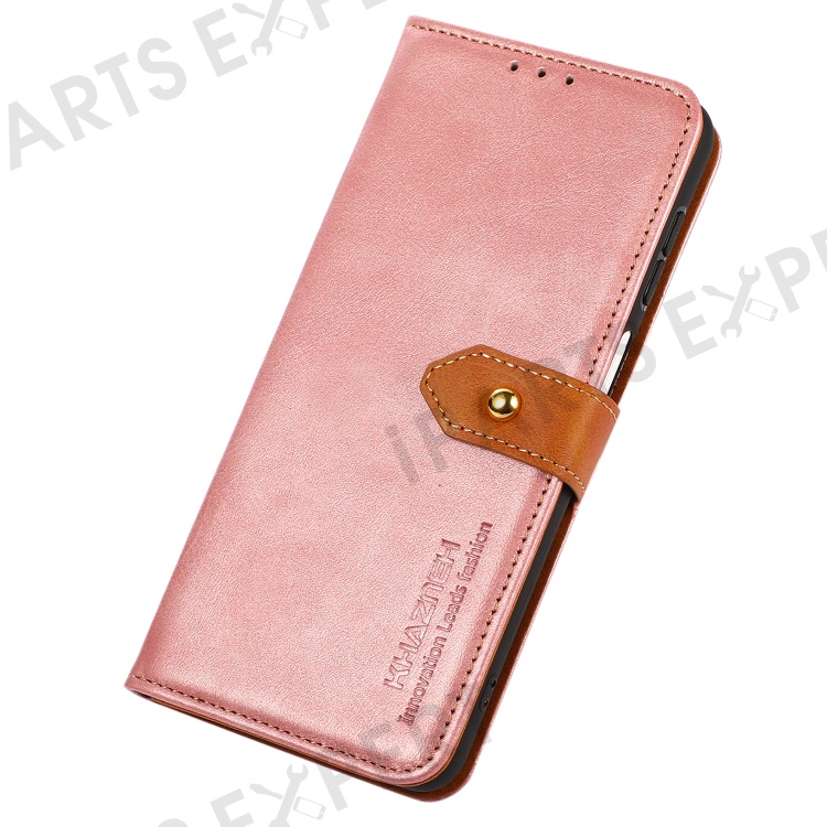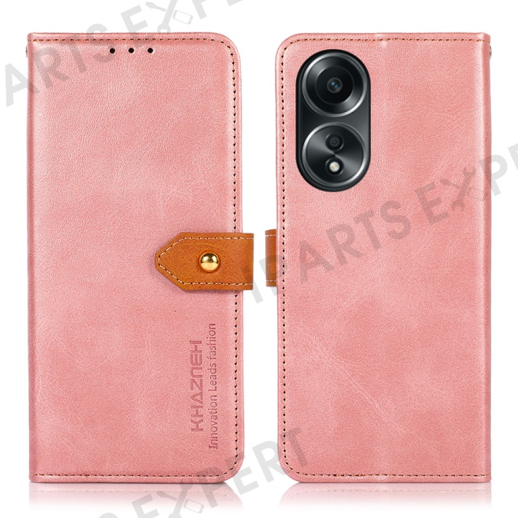 KHAZNEH For Oppo A58 5G Leather Wallet Phone Cover Foldable Stand Cowhide Texture Case - Rose Gold
