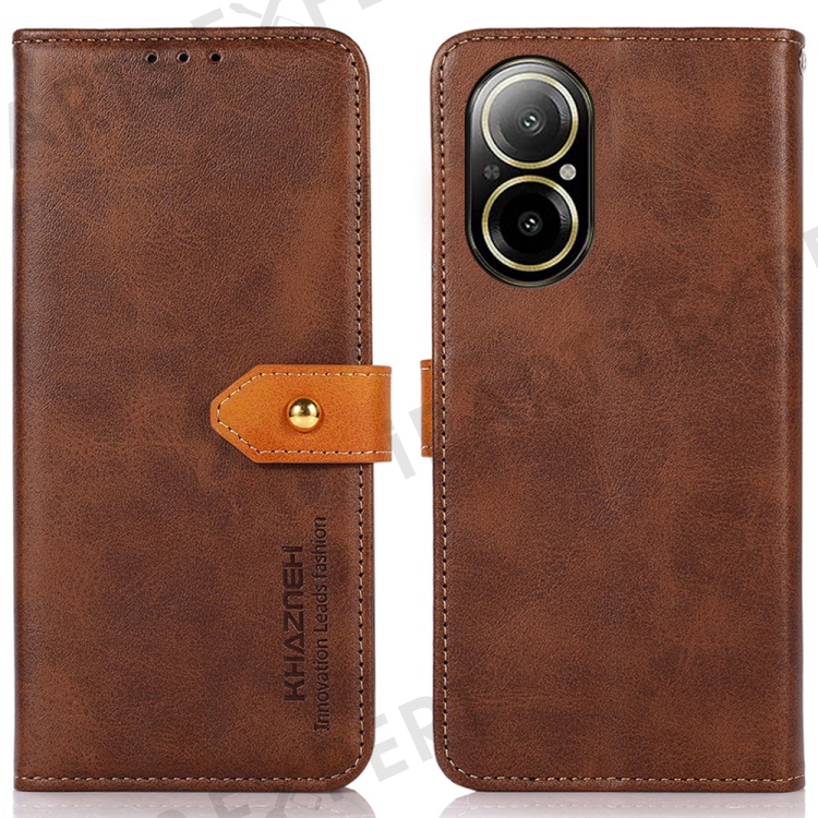 KHAZNEH For Realme C67 4G Case PU Leather Card Holders Stand Phone Cover - Brown