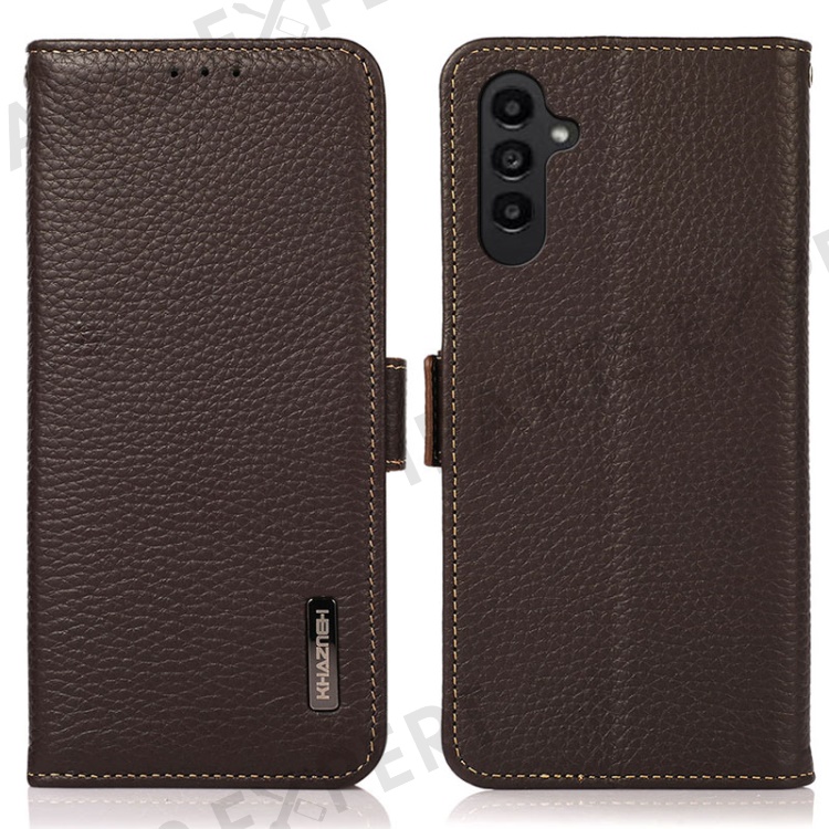 KHAZNEH For Samsung Galaxy S25+ / S24+ Cover RFID Blocking Genuine Cow Leather Phone Shell - Brown