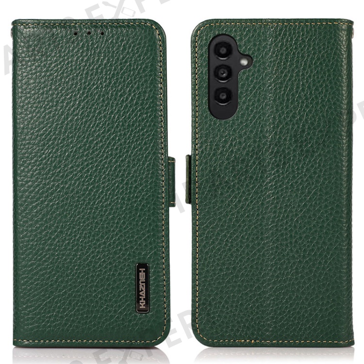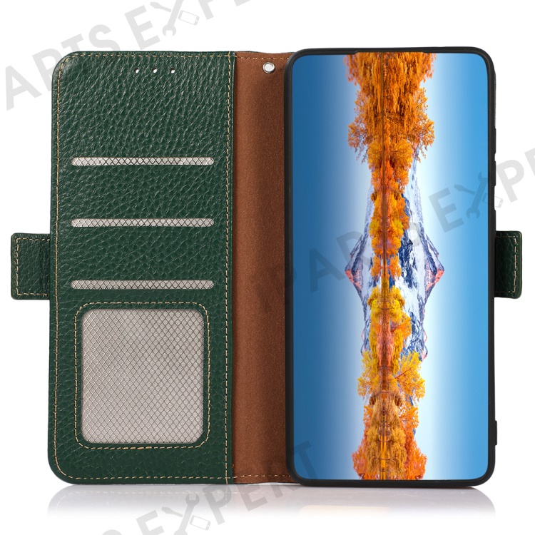 KHAZNEH For Samsung Galaxy S25+ / S24+ Cover RFID Blocking Genuine Cow Leather Phone Shell - Green