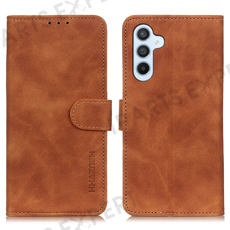 KHAZNEH For Samsung Galaxy S25 / S24 Case Retro Texture Leather Cover with Wallet - Brown