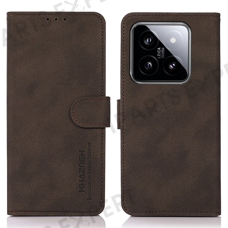 KHAZNEH For Xiaomi 14 Case PU Leather Protective Phone Cover - Brown