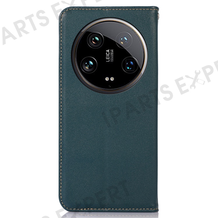KHAZNEH For Xiaomi 14 Ultra Case RFID Blocking Wallet Genuine Cow Leather Phone Cover - Green