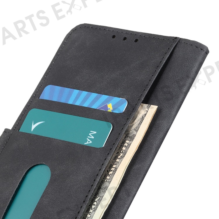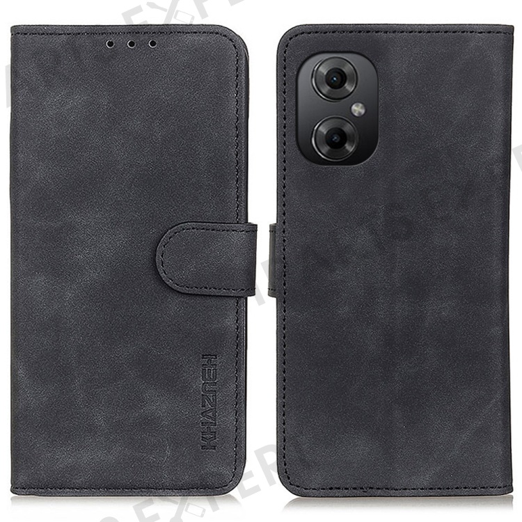 KHAZNEH For Xiaomi Poco M4 5G / M5 5G PU Leather Wallet Case Retro Texture Anti-scratch Stand Inner TPU Phone Cover - Black