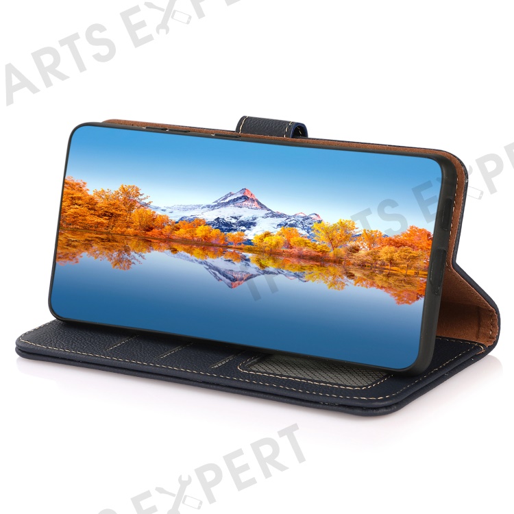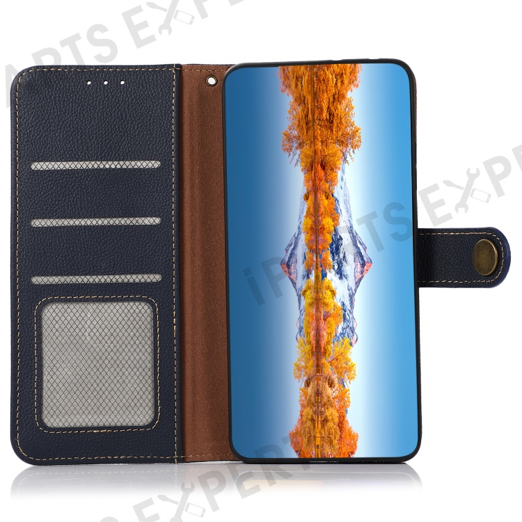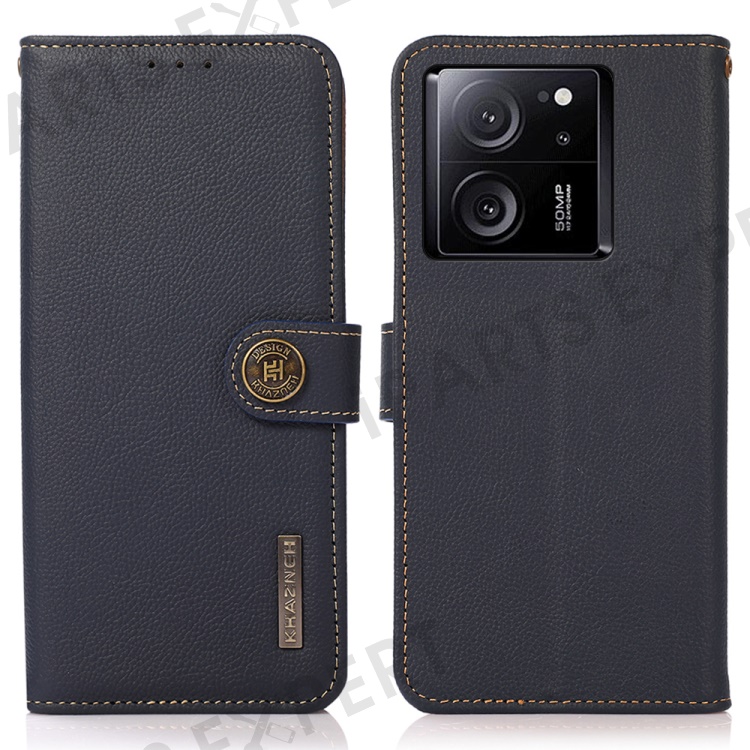 KHAZNEH For Xiaomi Redmi K60 Ultra / 13T / 13T Pro Case RFID Blocking Genuine Cow Leather Phone Cover - Blue
