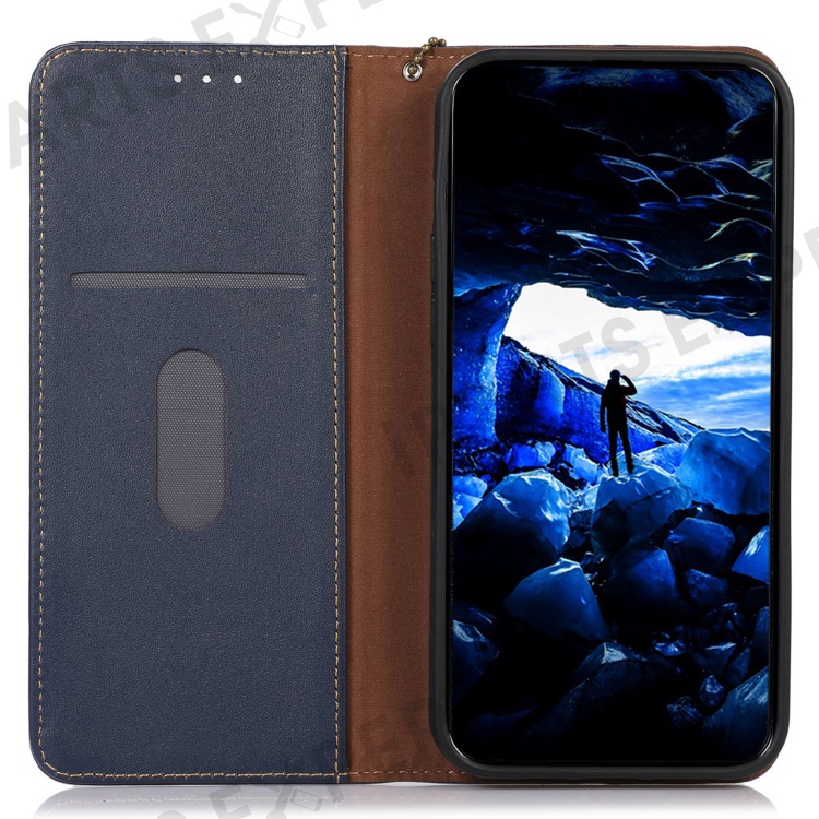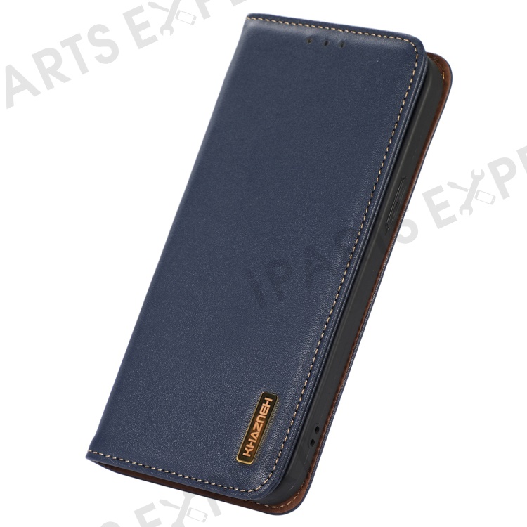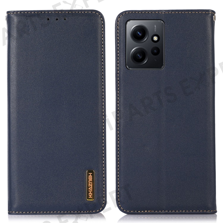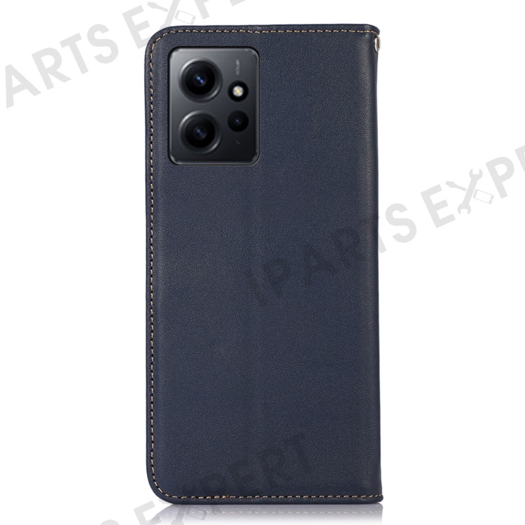 KHAZNEH for Xiaomi Redmi Note 12 4G Phone Case RFID Blocking Stand Wallet Genuine Cowhide Leather Cover - Blue