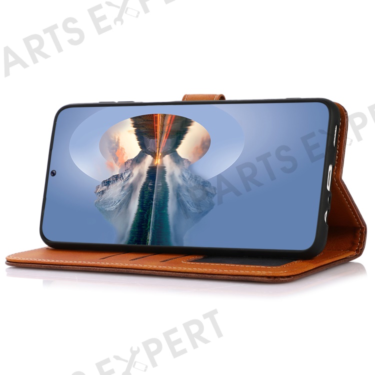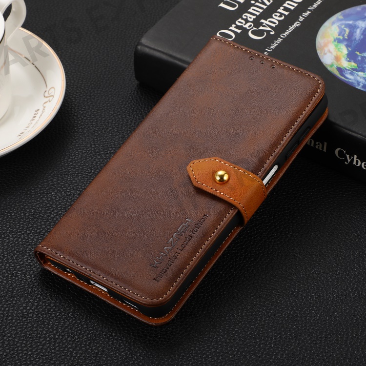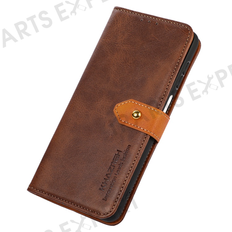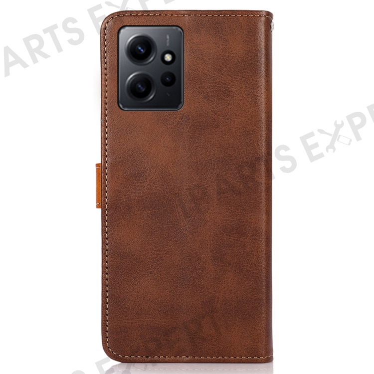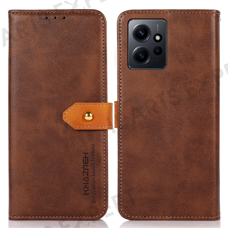 KHAZNEH For Xiaomi Redmi Note 12 4G PU Leather Cowhide Texture Phone Case Wallet Stand Phone Cover - Brown
