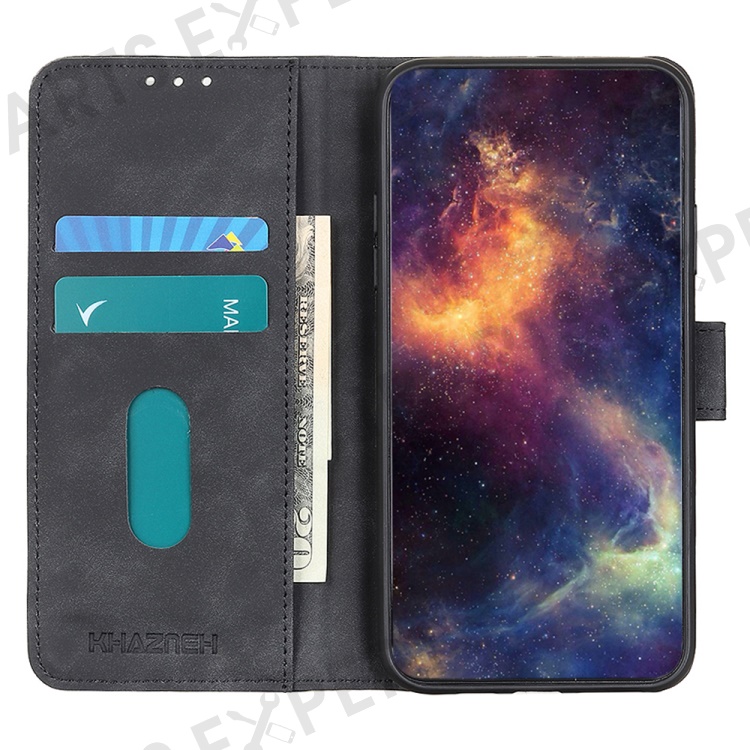 KHAZNEH For Xiaomi Redmi Note 12 4G Stand Phone Case Retro Texture Wallet PU Leather Phone Cover - Black