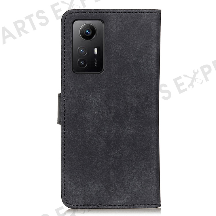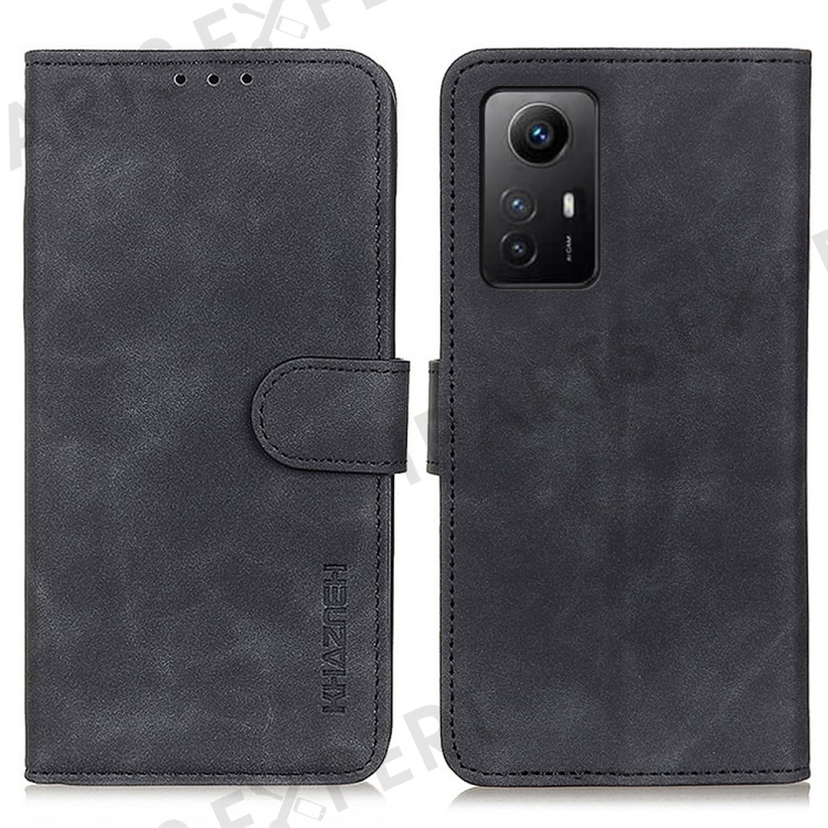 KHAZNEH For Xiaomi Redmi Note 12S 4G Retro Texture Phone Case PU Leather Phone Stand Wallet Protective Cover - Black