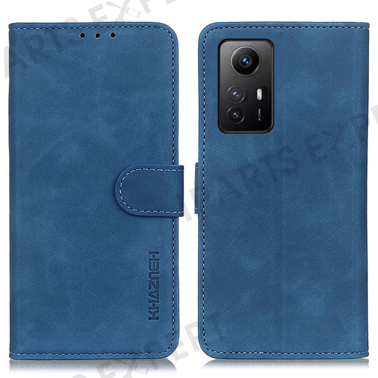 KHAZNEH For Xiaomi Redmi Note 12S 4G Retro Texture Phone Case PU Leather Phone Stand Wallet Protective Cover - Blue