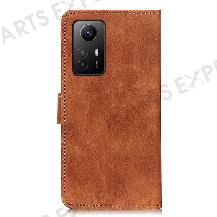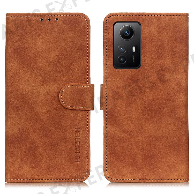 KHAZNEH For Xiaomi Redmi Note 12S 4G Retro Texture Phone Case PU Leather Phone Stand Wallet Protective Cover - Brown
