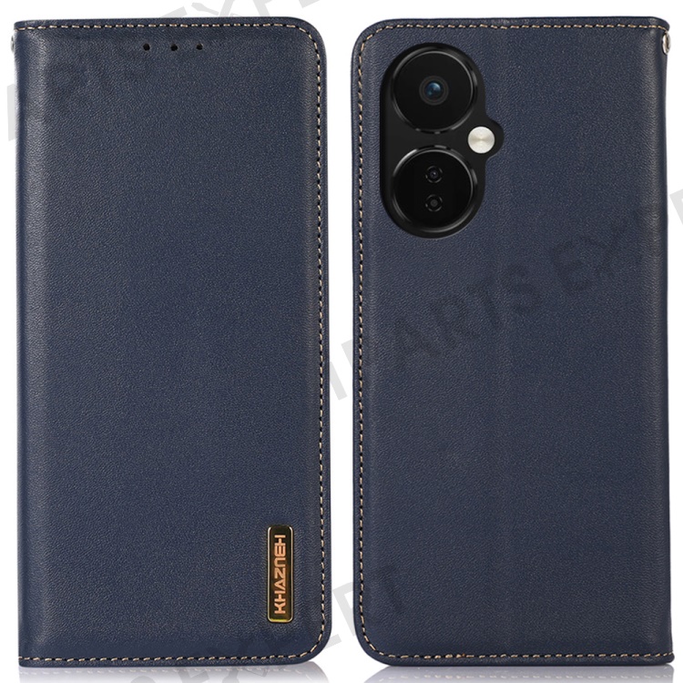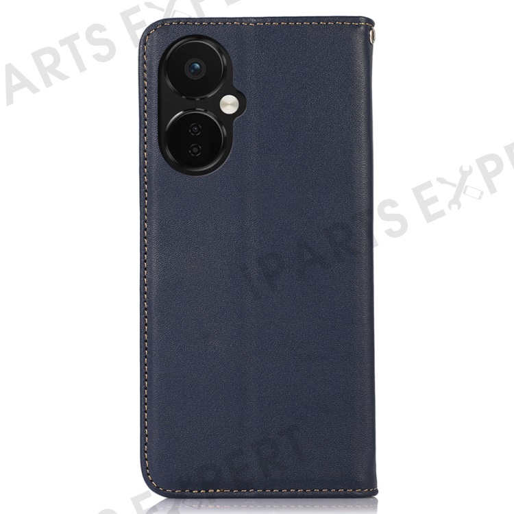 KHAZNEH Phone Case for OnePlus Nord CE 3 Lite 5G / Nord N30 5G Nappa Texture Genuine Cowhide Leather Phone Wallet Cover Stand Shell - Blue