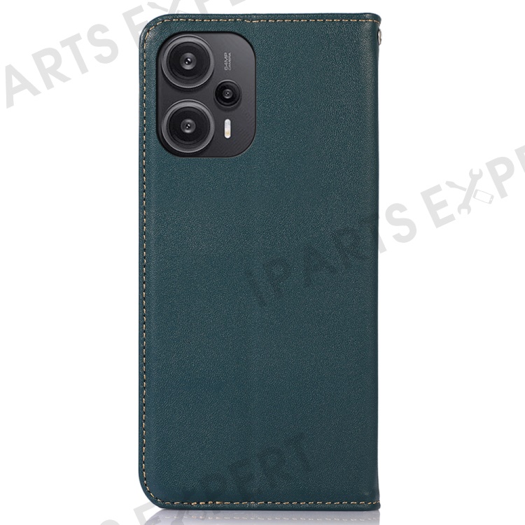 KHAZNEH Phone Cover for Xiaomi Redmi Note 12 Turbo / Poco F5 5G RFID Blocking Genuine Cowhide Leather Stand Wallet Case - Green