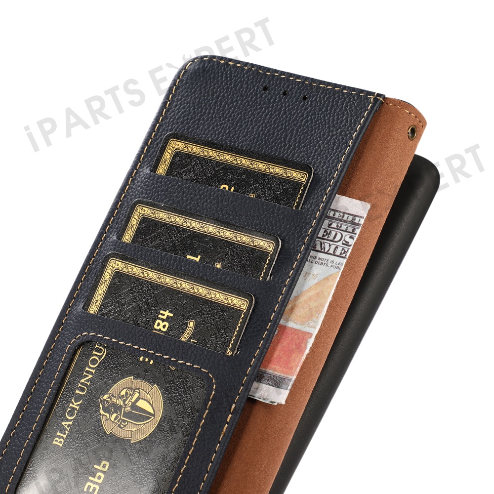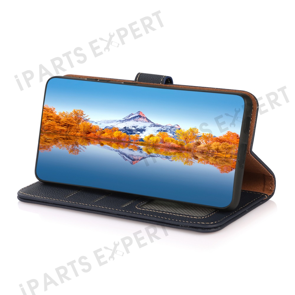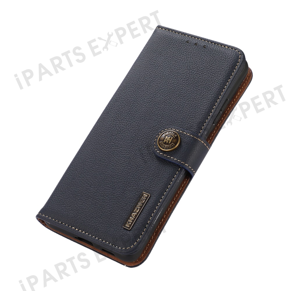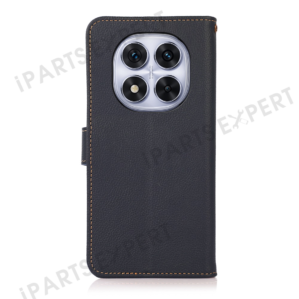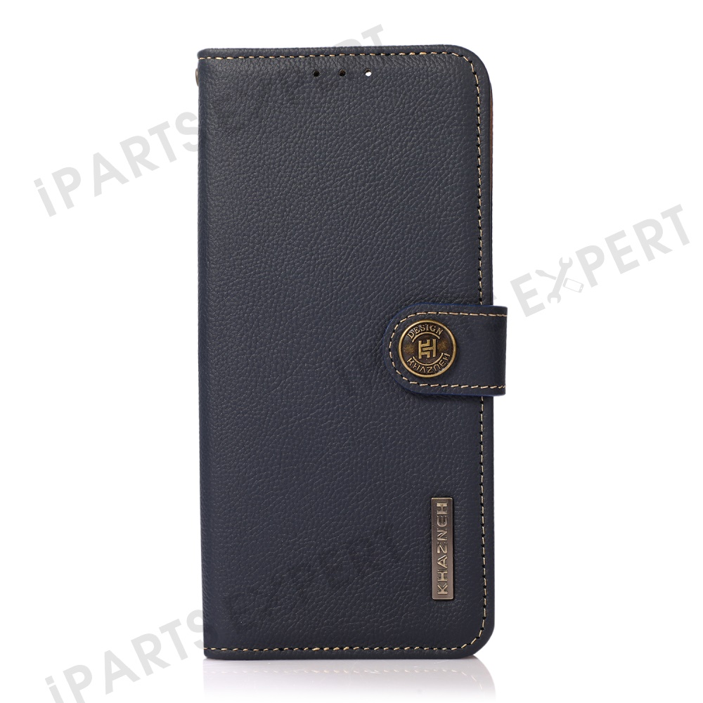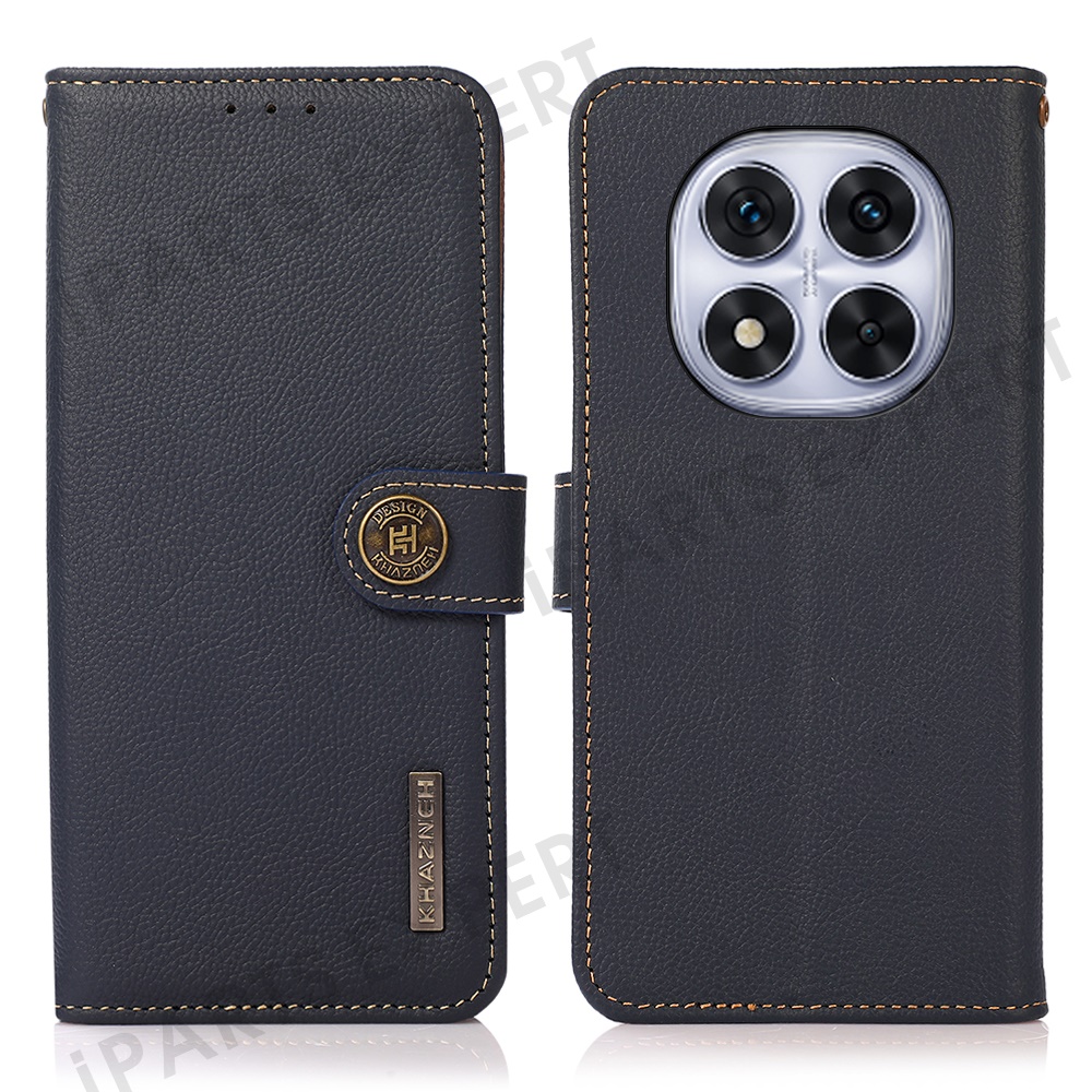 KHAZNEH Wallet Case for Xiaomi Redmi Note 14 Pro 5G / Poco X7 5G Genuine Cow Leather Phone Cover - Blue
