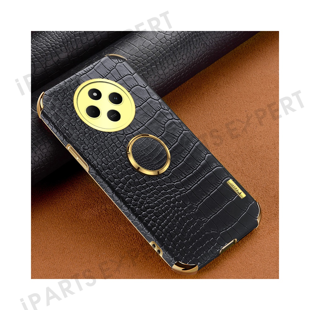 Kickstand Case for Xiaomi Poco C75 4G / 14R 5G / 14C 4G Crocodile Texture TPU + PU Electroplating Phone Cover - Black