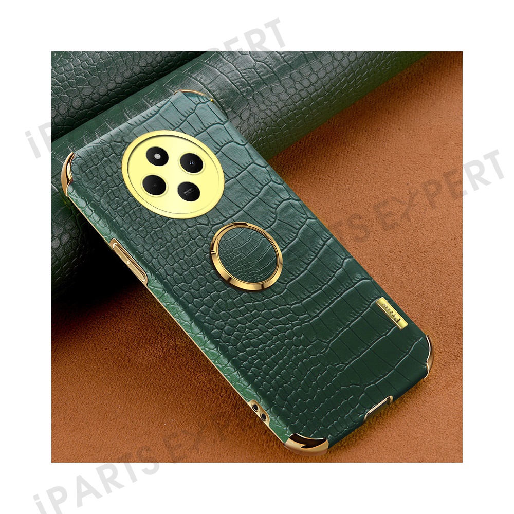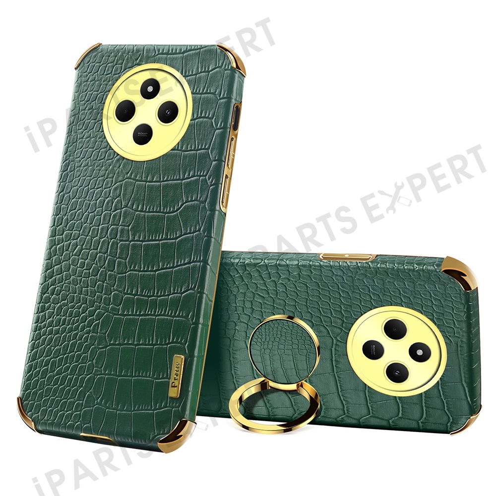 Kickstand Case for Xiaomi Poco C75 4G / 14R 5G / 14C 4G Crocodile Texture TPU + PU Electroplating Phone Cover - Green