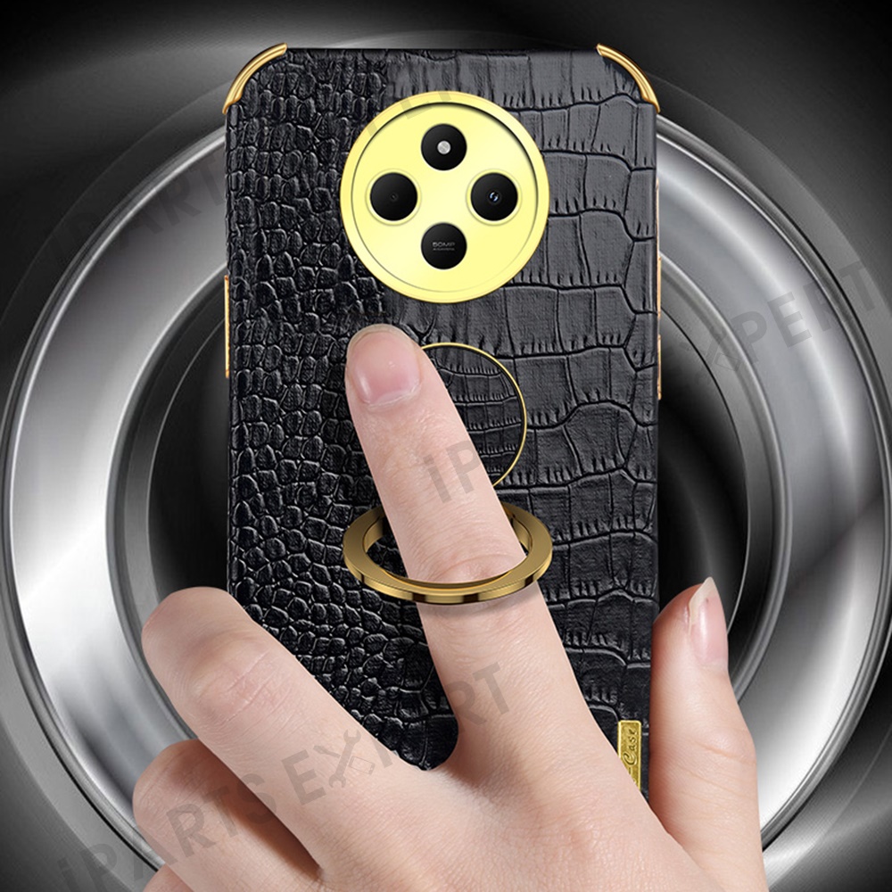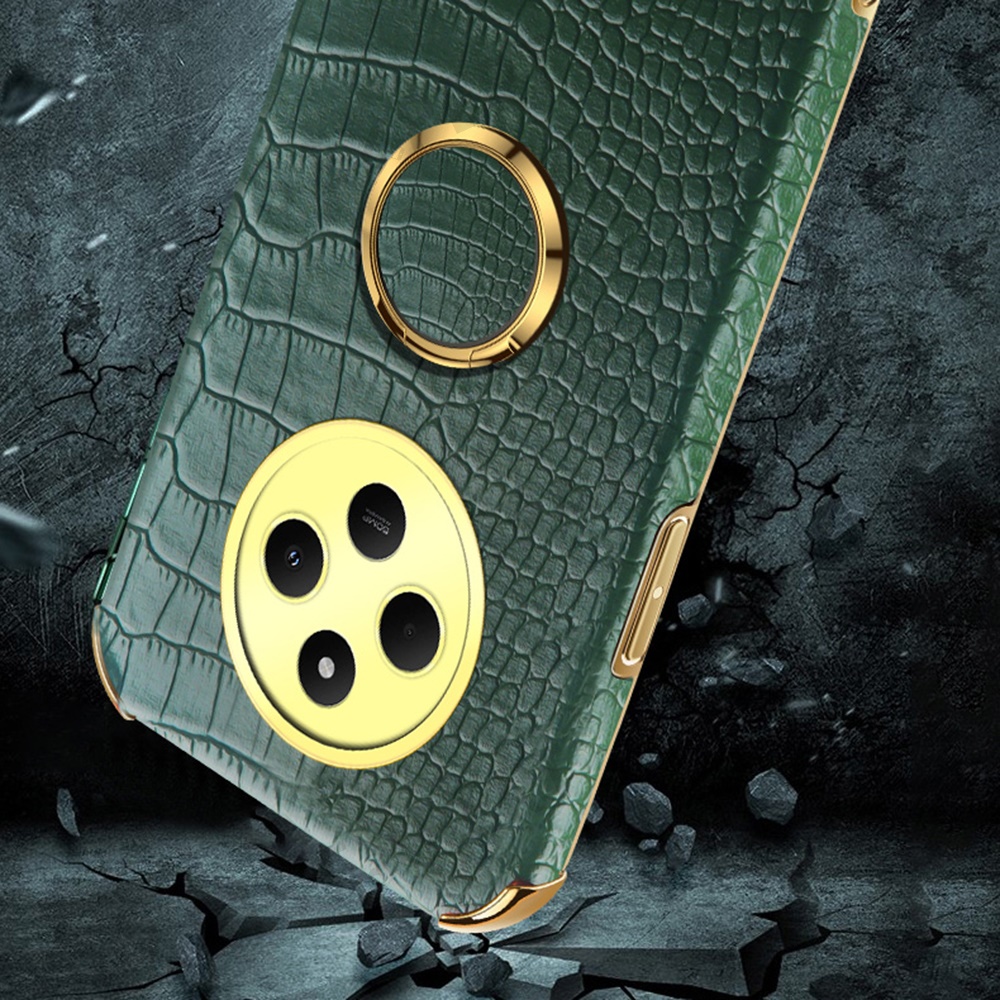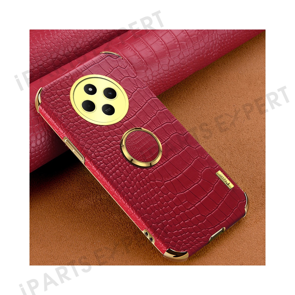 Kickstand Case for Xiaomi Poco C75 4G / 14R 5G / 14C 4G Crocodile Texture TPU + PU Electroplating Phone Cover - Red