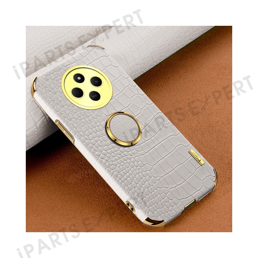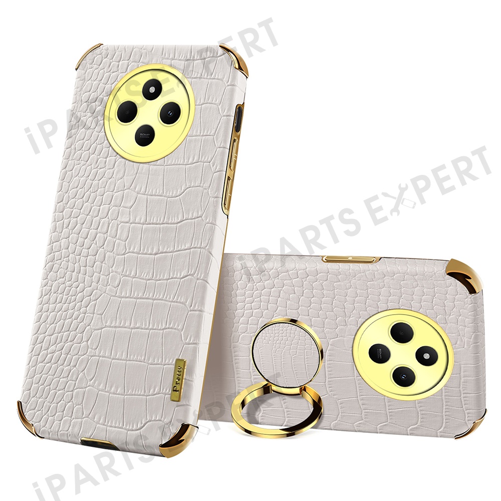 Kickstand Case for Xiaomi Poco C75 4G / 14R 5G / 14C 4G Crocodile Texture TPU + PU Electroplating Phone Cover - White